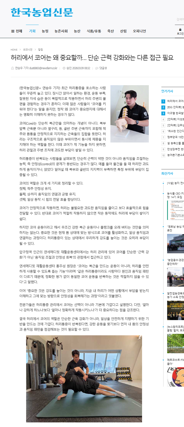 허리에서 코어는 왜 중요할까… 단순 근력 강화와는 다른 접근 필요
